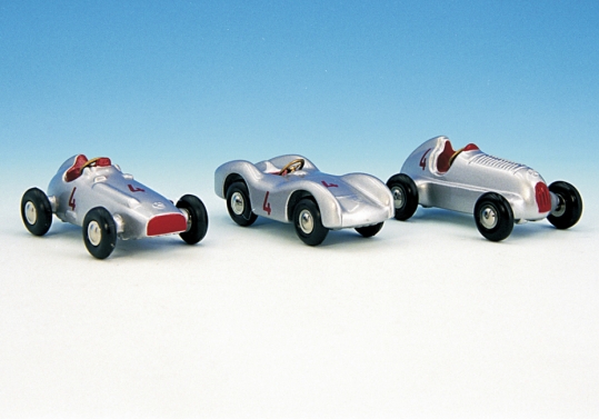 links Mercedes-Benz 2,5L, mitte Mercedes-Benz Stromlinie, rechts Mercedes-Benz 1936